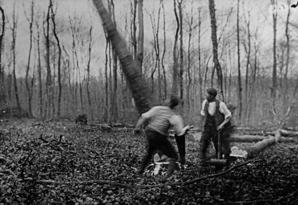 To go back to the beginning, when all the work was done by hand it may be of interest to give an account of the making of a chair. The timber was felled in the woods which surround Frieth. The logs were cleaned of their branches and sawn into suitable lengths. They were then loaded onto the timber-wagon and drawn to the Firm by two horses. The trees had been felled in the winter whilst the sap was down.