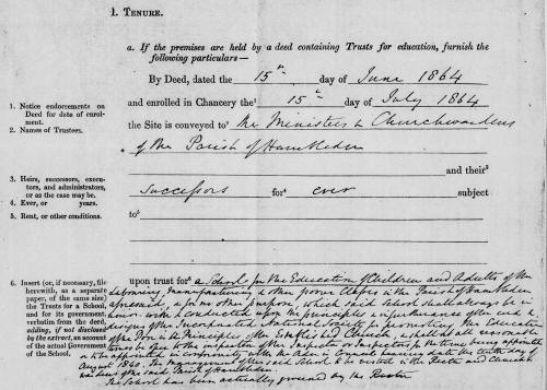 Finding land for a school In 1864 Rev. Ridley set to work to find a site and, by subscription, raise the necessary cash to erect a school building in Frieth. The school was to be set up "in accordance with the National Society for the Promoting of Education of the Poor in the Principles of the Established Church throughout England and Wales", as had been Hambleden School. Rev. Ridley was assisted in this task by Mr. and Mrs. H.W. Cripps who had moved into Parmoor House in 1860 with their young family, and who were philanthropic gentry keenly interested in education and the village of Frieth in general.