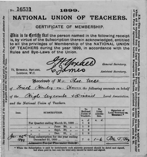 [ Tom West maintained his membership of the NUT until the end of his life :