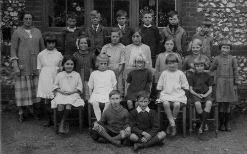 As can be seen from the preceding paragraphs, up to this period the village schoolmaster was still expected to work six days a week. School teachers nowadays put in many more than the 9am to 4pm hours they are actually in school but this is on a voluntary basis. Both Mr & Mrs Derry were strict disciplinarians but as one 'old pupil' 1910-24 said : "He used to cane us boys, but we deserved it." (Note 21 [and 21a] ) During the 21 years Mr Derry was headmaster there are only three recorded instances of parents who objected to their children being punished [Note 21b]. Mr Derry was obviously interested in singing and dramatics. He organised a concert of some sort most years, sometimes to raise money for a specific cause. Often performances were given in the Village Hall. May 1st 1907 : This evening the children gave an Entertainment in the Village Hall in aid of the School Piano Fund (Note 22) Everything passed off satisfactorily. The total receipts amounted to £7-19-8d May 24th 1924 : Empire Day observances this year took the form of the rendering of the cantata entitled "Britannia Queen of the Ocean" which the scholars have been learning during the past two months. The performance in the Village Hall in the evening was most successful and was much appreciated by the audience. £9-13-0d was taken at the door. After deducting expenses the remainder will be placed to the credit of the fund for taking the elder scholars to the British Empire Exhibition at Wembley An old pupil at school in 1926 (now [1985] living in the USA and returned on a holiday to visit her sister) told me that the children performed a play called "A Blade of Grass" at Lane End. This was a concert arranged by the Bucks. Education Authority as a joint effort by schools in the surrounding villages. In line with the majority of schools in the early post war period Mr Derry celebrated Empire Day with national songs and a ceremony, saluting flag etc. Unlike his predecessors, Mr Derry does not mention maypole dancing although the older villagers tell me maypole dancing was done at the annual Parmoor flower show. May 1st was never mentioned as being celebrated in school although the log book records : May 1st 1908 : Some children absented themselves to go Garlanding Certainly during WWI some parents organised a May Day Garlanding to collect money for comforts for the troops. Possibly Mr & Mrs Derry considered "Maying" as a "heathen" custom. During Mr Derry's time as headmaster the school numbers dropped from 111 in 1906 to 50 in 1928. This must have been somewhat depressing for him as the decline was remarked upon in the yearly reports, but was due to circumstances beyond his control. Firstly, Skirmett Infants School was closed shortly after WW1. Skirmett parents chose to send their little ones to Turville school, a much easier, level walk and many of the older Skirmett children accompanied them. Some parents chose Hambleden School as the public bus service ran via Skirmett to Hambleden. Secondly, the birth rate dropped all over the country and thirdly, there was a drift away from farming to better paid work in urban areas. Judging by the entries in the Log Book, Mr Derry made several attempts to secure another post, but either failed to do so or did not like the schools he was offered. By this time scales of pay were established countrywide, but Bucks was on the lowest pay scales. Neither Mr nor Mrs Derry seem to have enjoyed the best of health. In fact Mrs Derry had long periods of absence, e.g. March 1921 : During the last term the work of the Upper School has been carried on under very great difficulty since Mrs Derry has been absent ill throughout the whole term Supply teachers came and went during these periods of illness, inevitably this added to the workload of the headmaster. From 1903 to 1925 Miss Elizabeth Barksfield, who had first been a Monitress and then a Supplementary Teacher, took the infants class. She seems to have been well thought of and became a good teacher, trained and guided by three successive headmasters and two of their wives.