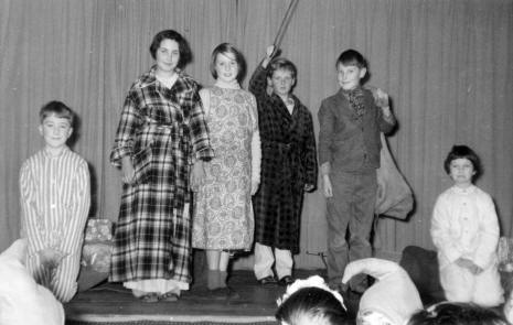 [ Linda Robson, Robert Willis, Susan Austin, ?, David Cox, Richard Austin, William Barksfield, Joan Barksfield at the piano ] Thanks to Humphrey Stanley for pointing out Linda Robson - Feb 2018 Christmas concerts of a secular nature were performed in the Village Hall in 1961, 63 and 64 ![]() Christmas 1961 - Seven Little Father Christmases ![]() ![]() Father Christmas's Assistant The school children and teachers went carol singing each Christmas. The proceeds were given to a charity. Photographs of the children and staff were taken every other year. In September 1961 the Wycombe Rural District Council allowed the school to use a small field in Ellery Rise for organised games. This was a significant step forward as the school had practically no land of its own. Now the boys were able to play football on the field whilst the girls played netball on a court marked out on the tarred area of the Village Green.