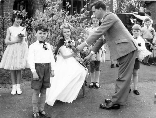 [ Thanks to 'Agd' for pointing out Robert Keep ] [ Thanks to Bob Dobbs who thinks the boy next to Robert Keep is Robert Robinson ] The staff attended various educational courses at Missenden Abbey and elsewhere. In 1964 Bulmershe Training College sent students for school practice. March 1961 : Mrs Church commenced duties (Note 61) April 1962 : Mrs Wilkinson commenced duties as Clerical Assistant The school was aided materially by the acquisition of new apparatus Jan 1961 : PT apparatus ordered July 1961 : Climbing Frame delivered Dec 1961 : Duplicator delivered April 1962 : Film strip projector, screen and trolley brought by Visual Aids Officer Sep 1962 : S.A.O called with an 8 day clock for each classroom Oct 1962 : Silencers fitted on all movable furniture Feb 1964 : A portable tape recorder arrived for the school Mar 1965 : A television set was installed (Note 62) The following is a selection from the many outside Educational visits enjoyed by the pupils : Apr 1961 : School visit to Job's Dairy May 1961 : Visit to Huntley and Palmers Biscuit factory Oct 1961 : Historical visit to Hambleden Church April 1962 : Telephone Exchange visited July 1962 : Visit to London, ROSPA House and Science Museum July 1963 : High Wycombe Fire Station visited July 1963 : Day spent at London Planetarium and Natural History Museum Dec 1963 : Twelve children were taken to see 'Fantasia' at the cinema in Marlow May 1964 : Chinnor cement works visit [ I remember it well ] July 1964 : Third and Fourth year Juniors visited Wiggins & Teape paper manufacturers July 1965 : London visit, By river from Westminster to Greenwich, Cutty Sark and the Maritime museum [ I also vividly remember a visit to the Ford motor factory at Dagenham in 1964/5 ] June 1961 : The school attended the music festival at Stokenchurch [ And had to sit listening to recorder groups. Yeugh! ] Oct 1961 : Inter-school Highway Road Quiz [ This became a regular event ] April 1962 : The Queen visited Marlow, most children went to see her and lined the streets. [I was disappointed because she wasn't wearing a crown! ] As before the school was visited by officials; added to their number was the Visual Aids Officer The school attended church services several times each term and the clergy came into school each week to take scripture. A Parents evening was held each year. In 1962 May Day festivities were revived and included Maypole dancing, Mimes and Playlets
